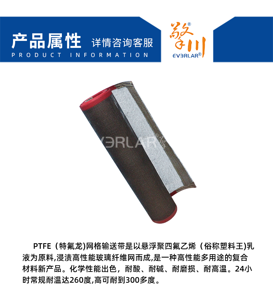 產(chǎn)品名稱:耐高溫特氟龍網(wǎng)格輸送帶