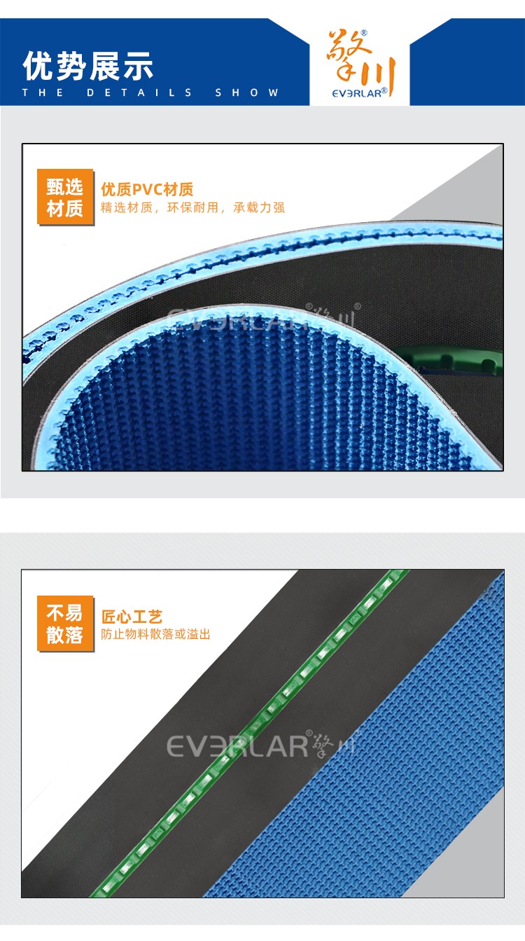 • 產(chǎn)品名稱:橡膠輸送帶加花紋加導條耐磨防滑耐撕裂工業(yè)皮帶