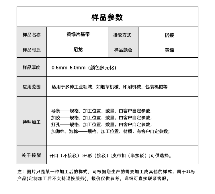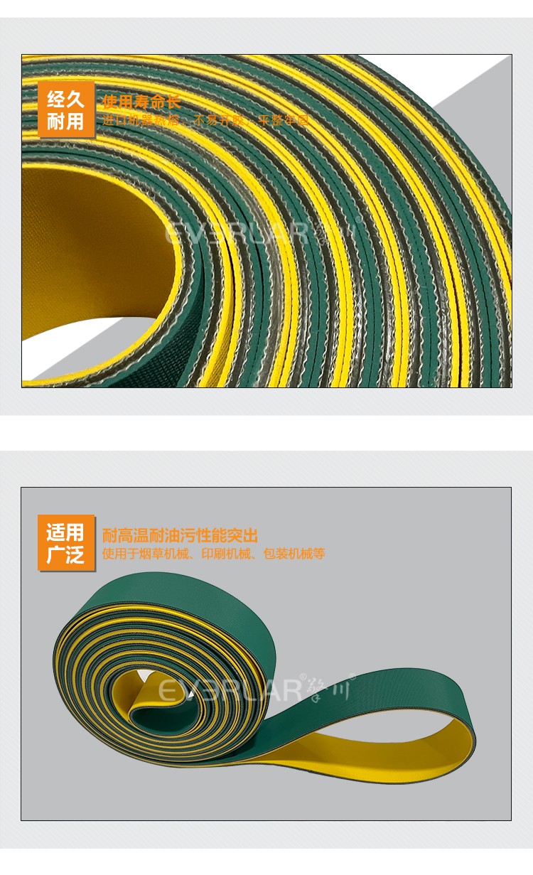 產(chǎn)品名稱:黃綠片基帶抗拉防滑印刷紡織行業(yè)高速傳動平皮帶工業(yè)廠家定制