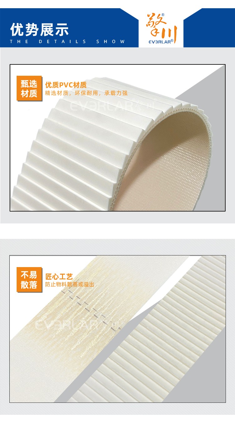 • 產(chǎn)品名稱:白色PVC搓衣板輸送帶防滑耐磨工業(yè)皮帶食品包裝物流行業(yè)傳送帶