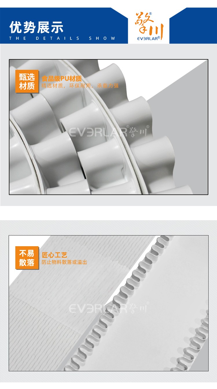 • 產(chǎn)品名稱:白色PU輸送帶加裙邊食品級耐油食品醫(yī)藥分揀輸送機皮帶廠家定制