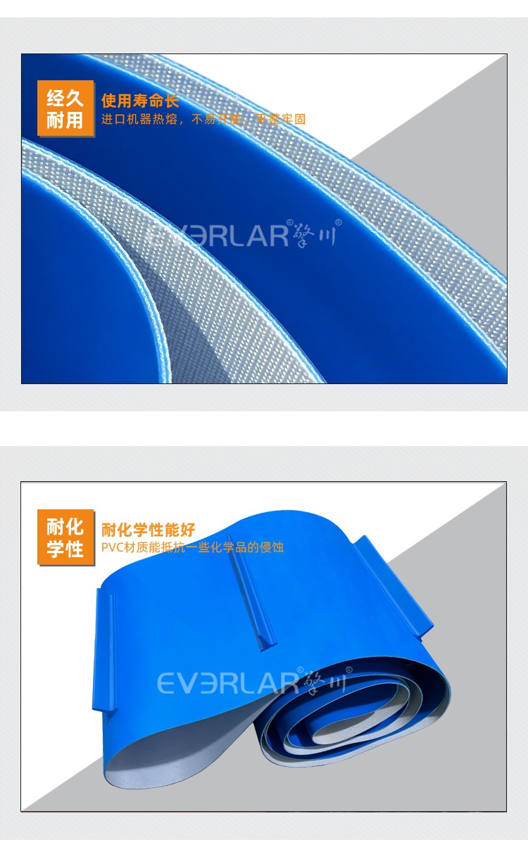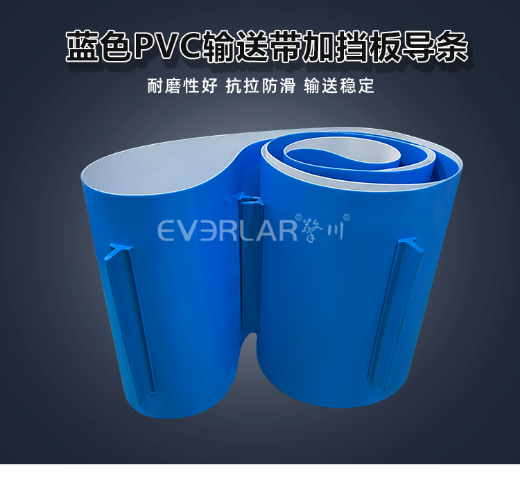 產(chǎn)品名稱:藍(lán)色PVC輸送帶加擋板導(dǎo)條耐磨防跑偏防掉落自動(dòng)化生產(chǎn)線物料傳送工業(yè)皮帶